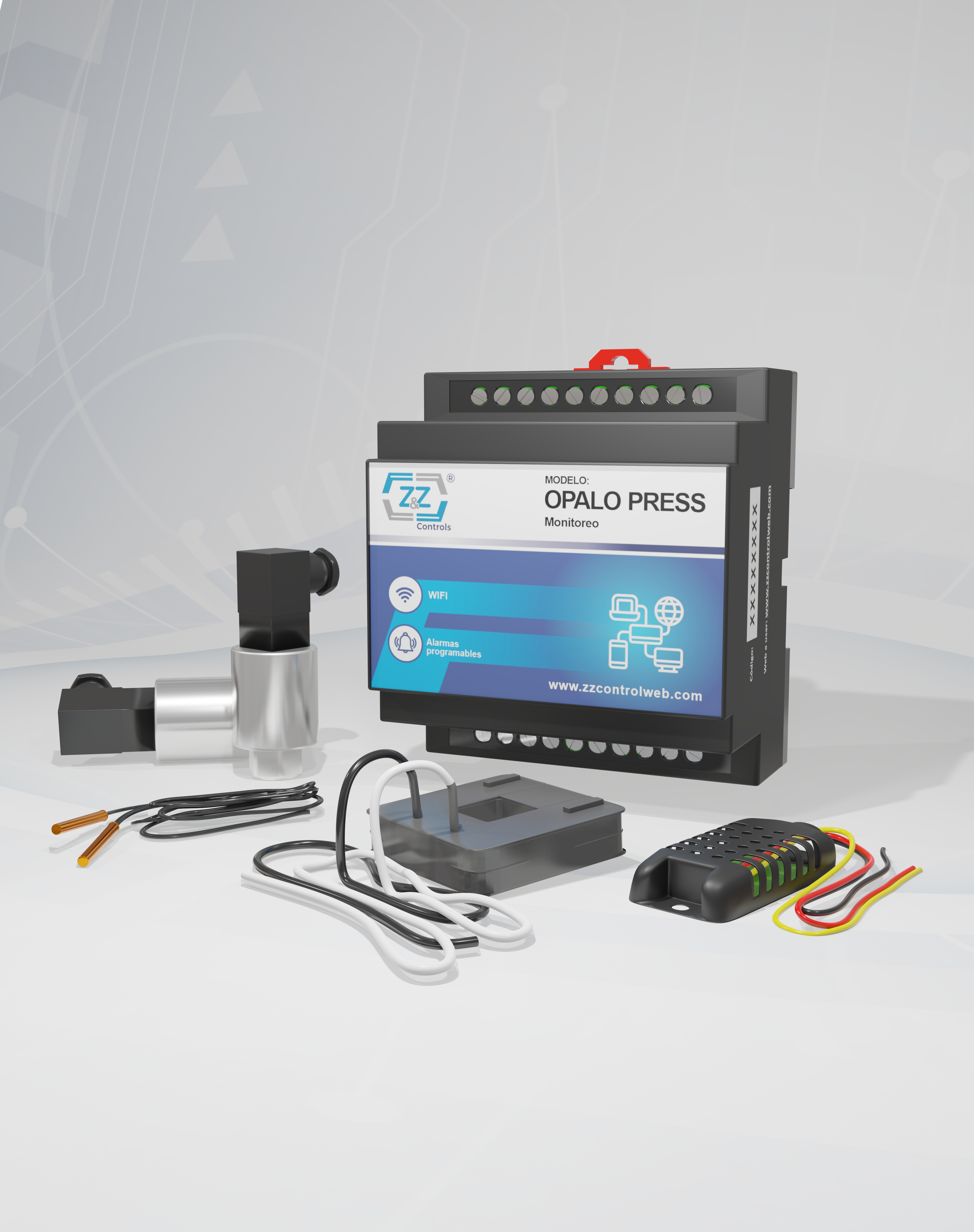 Sistema de monitoreo y control, mide 8 variables Realiza control sobre todo el ciclo de refrigeración logrando manejar el encendido y apagado del compresor, ventilador y ciclos de descongelamiento. Es supervisor de voltaje y de intensidad de corriente (protector térmico) pudiendo proteger el equipo ante una eventualidad, y restaurar automáticamente el sistema al volver los parámetros de voltaje y corriente a la normalidad. En su plataforma web, se pueden ver además de todos estos parámetros, el Consumo Energético y la Potencia. Genera alertas de todas las variables medidas, recibidas vía correo electrónico y mensaje de texto. Parámetros de medición: Humedad relativa de 0-99%. Voltaje en un rango de 80 V a 300 V AC (Alimentación Multivoltaje). Amperaje hasta un máximo de 300 A. Rango de temperatura es de -30°C hasta 120°C. 6 Entradas de Sensores. 3 Salidas de relé de control.